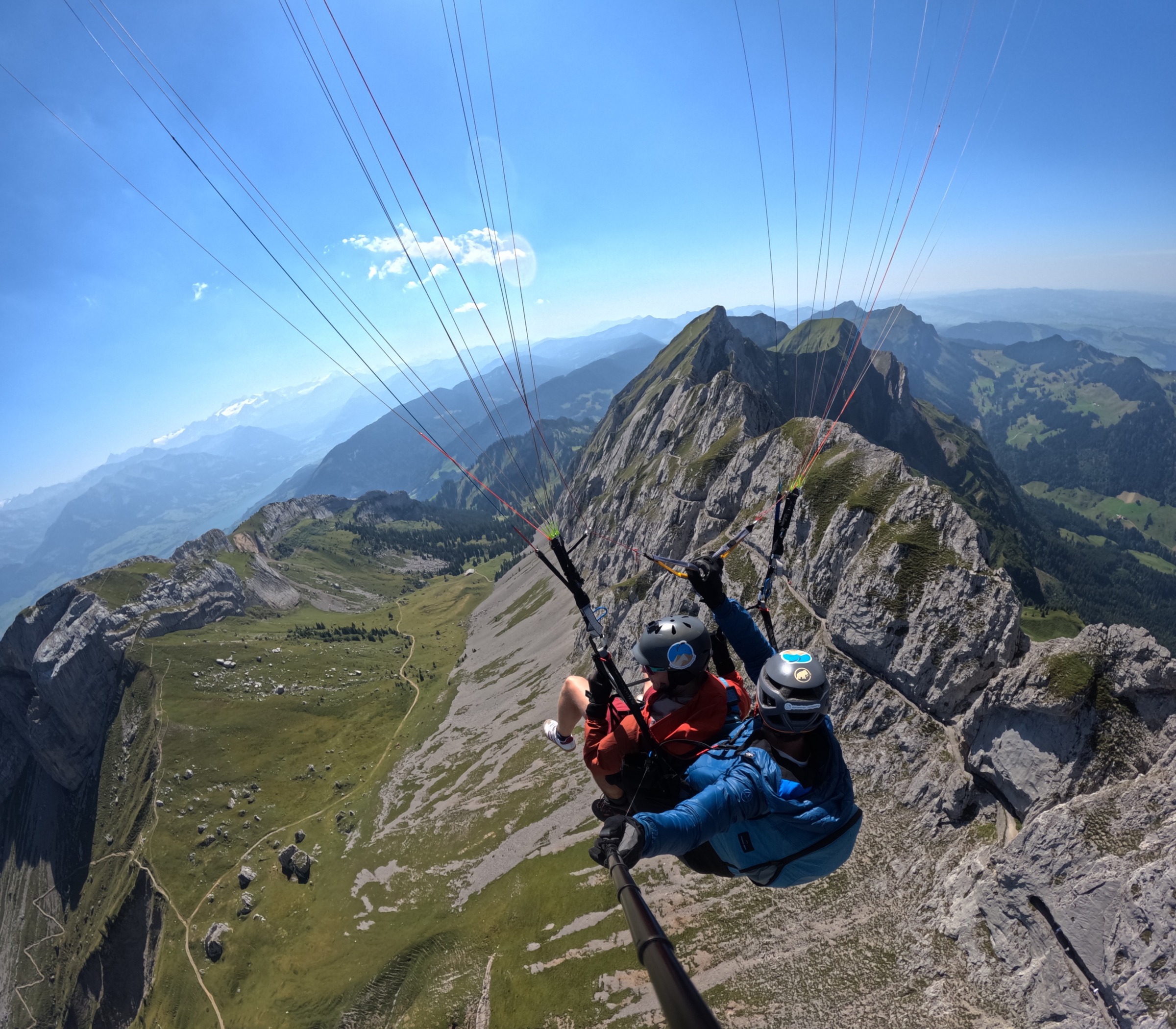 Ja. Gleitschirmfliegen in der Schweiz ist streng reguliert. Ich bin ausgebildeter SHV-Tandempilot und halte mich an alle Vorgaben des Verbands. Die Ausrüstung wird regelmässig geprüft und gewartet, und geflogen wird nur bei stabilen und sicheren Bedingungen.