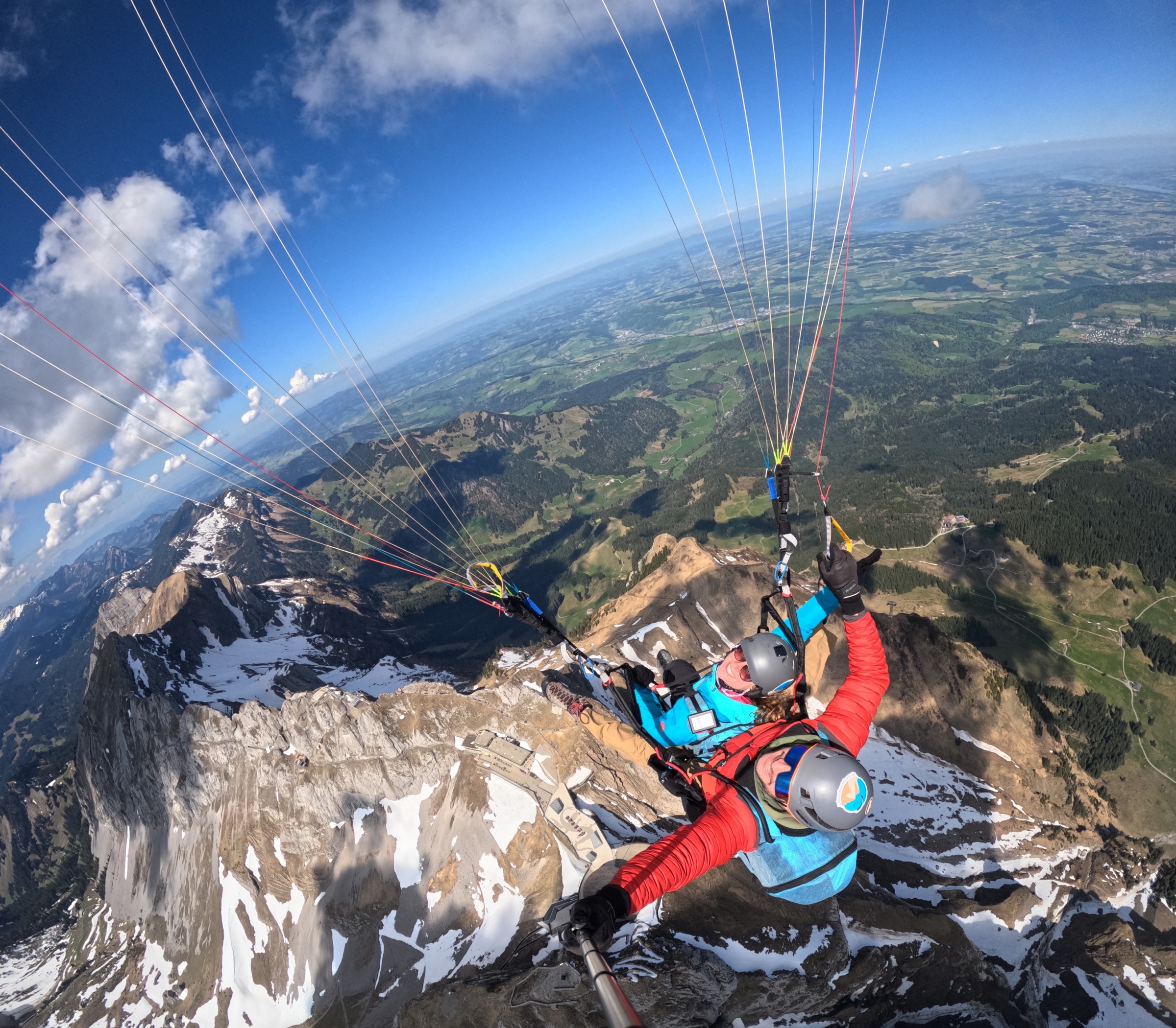 Ja. Gleitschirmfliegen in der Schweiz ist streng reguliert. Ich bin ausgebildeter SHV-Tandempilot und halte mich an alle Vorgaben des Verbands. Die Ausrüstung wird regelmässig geprüft und gewartet, und geflogen wird nur bei stabilen und sicheren Bedingungen.